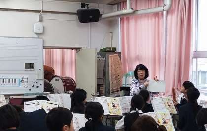 グループに分かれて、「おかしのすきなまほう使い」の演奏について、相談をします。