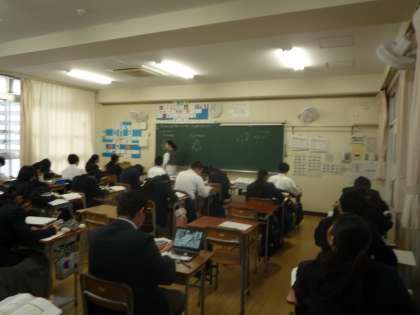 9年生の数学で、公開授業がありました。三平方の定理と特別な直角三角形の比を利用して、いろいろな線分の長さを求める取り組みがあり、しっかりと問題にチャレンジしていました。