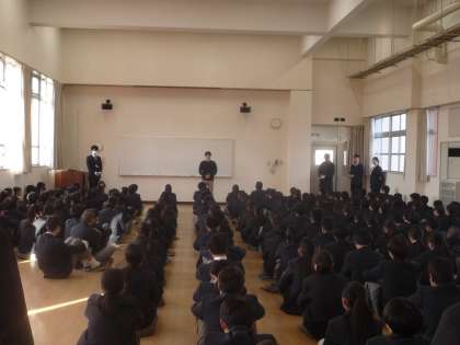 中学校の全校集会で、学習面、生活面から、3学期気持ちをあらたに頑張ろうという内容の話がありました。