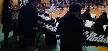 「威風堂々」「アンダーザシー」など、通しで演奏しています。いろいろな楽器を使ってリズムを合わせ、演奏することができています。