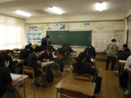 9年生の数学で、2クラスに分けて図形の問題に取り組む授業がありました。説明をしっかりと聞いてチャレンジしていました。