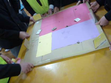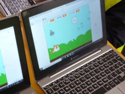 図工室にて、6年生のプログラミングゲーム、ころころゲームにチャレンジです。
