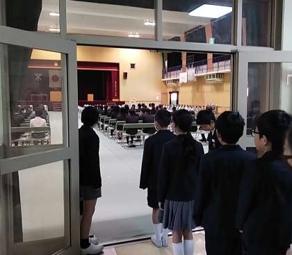 5年生の「大空が迎える朝」を聞きながら、入場です。