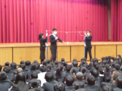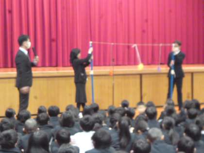 さて、今日はこんなものを用意しました。教頭先生お願いします。中学生の皆さんもしっかり見えていますか。