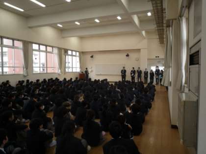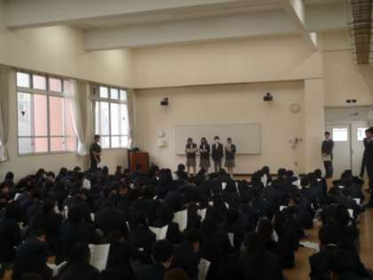 始業式後の中学校の全校集会では、各学年など先生方の紹介がありました。その後、生徒会よりとても丁寧に中学校生活の説明がありました。