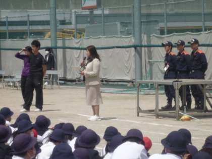 校長先生からも、ハンカチがなくても手や腕、服などで口を覆って煙を吸わないようにし、「おはしもち」おさない、はしらない、しやべらない、もどらない、ちかづかない。をしっかり守って避難し、中学生は災害時の自助・扶助・共助も意識し、大変な時には、しっかり指示を聞いて行動することが大事ですとの話がありました。