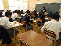 11月5日木曜日 本日6限目、3年生対象に英語能力判定テストを実施しました。英語検定3級程度の問題です。近い将来には英語検定やTOIECなどを資格が、大阪府の公立高校入試で英語の代わりになる時が来るなどの報道もありました。子どもたちには入試一発勝負という精神的な負担は減るのかもしれませんが、テストが増えることで、大変な面も考えられます。