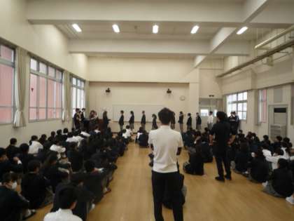 本日、中学校は認証式が行われ、各委員会の生徒が校長先生から認証状を受け取りました。