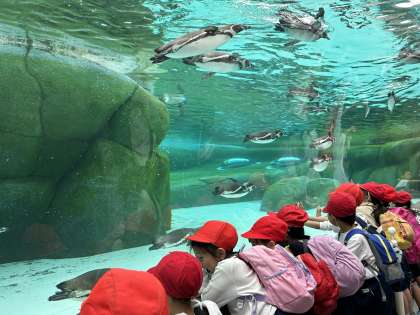 お弁当とおやつを食べ、昼からも少し園内を見て周っています。ペンギンパークです。