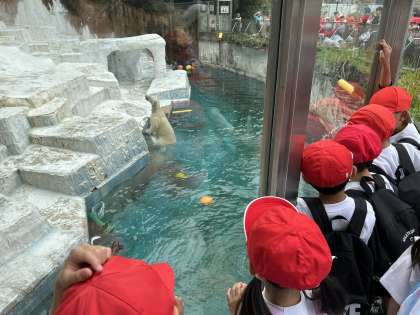 とっても大きなホッキョクグマが、水に飛び込み泳いでいる様子にみんなも大興奮です。