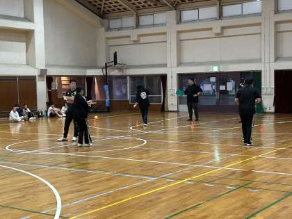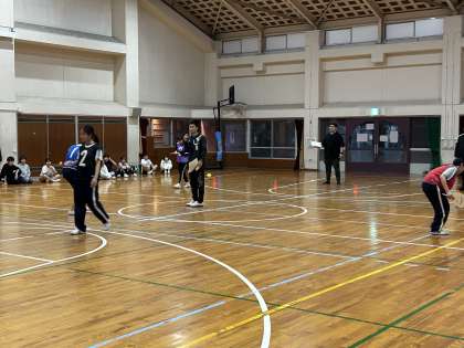 うちわにピンポン玉をのせて落ちない様に運ぶレースです。