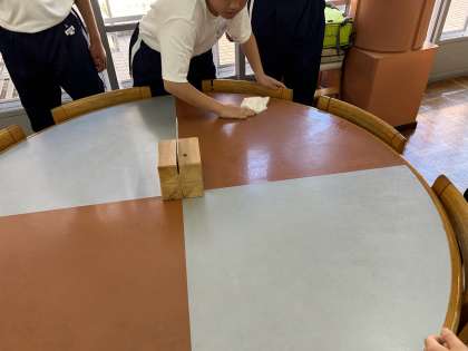 ごちそうさまをして、片付けし、テーブルもきれいにふいています。