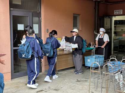 食材班が食材を受け取っています。