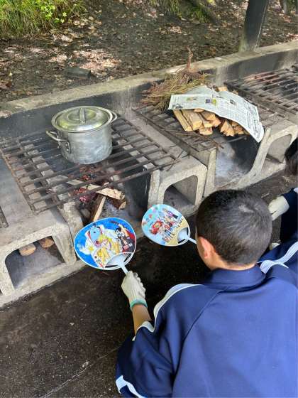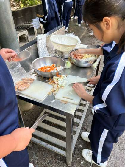 カレーをみんなで協力して作っています。どの班が一番美味しく出来上がるでしょうか。