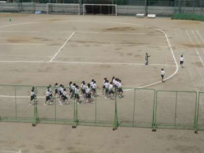 7年生の体育で、運動会に向けての行進の練習がありました。音に合わせてリズムをとる練習を繰り返し行いました。