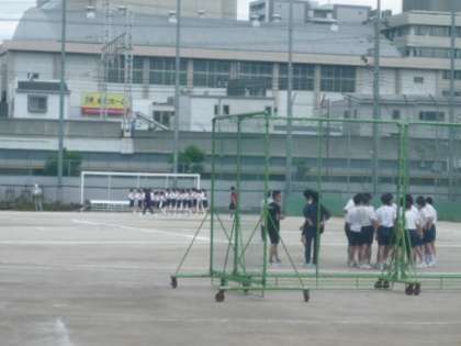 9年生の体育で、運動会の学年種目を練習しました。男女に分かれて、繰り返し声を合わせて動きをそろえる練習をしていました。