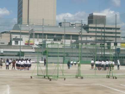 7年生の体育で、運動会の学年種目の練習をしました。各クラス応援をしながら、一生懸命取り組んでいました。