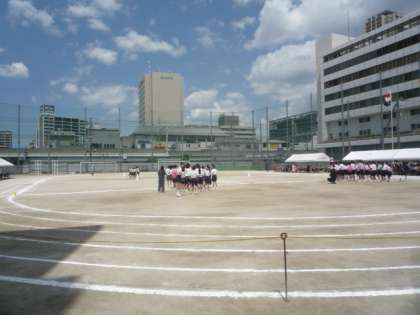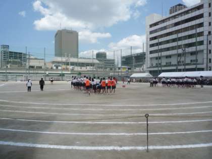 7年学年種目(台風の目)と8年学年種目(X人Y脚)の様子。白熱した競技になりました。