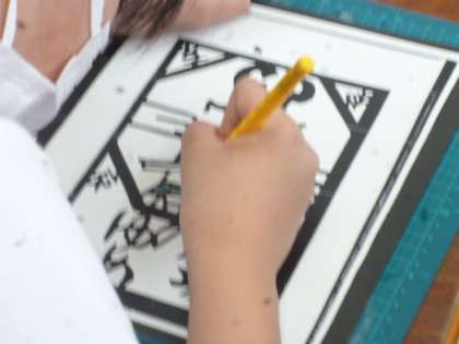 図工の時間に切絵をしています。細かい作業を丁寧に行い仕上げていきます。