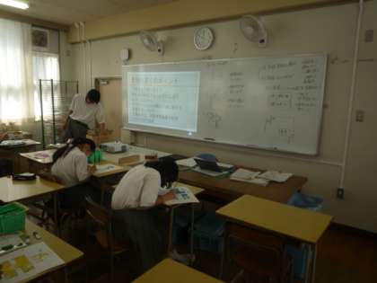 9年生の美術で、オリジナルの着物のデッサンをする授業がありました。それぞれ素敵な模様を下書きしていました。