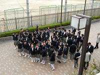 みんな楽しそうに写真撮影場所に集まってきたところを写した写真です。中学校の大切な思い出としてこのあとポーズをとっていました。