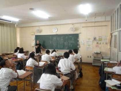 7年生の国語で、題材の中にでてくる言葉や文章の意味を調べる授業がありました。質問にもしっかりと答えていました。