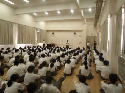 終業式後、中学校は全校集会を行い、夏休み中の生活面と学習面について、計画的にかつ効率的に行動するよう話がありました。