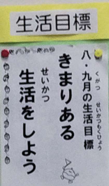正門の掲示板に、代表委員会の人がつくってくれためあてを掲示しています。