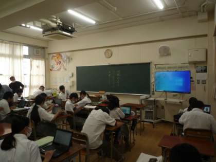 8年生の国語で、短歌をつくる授業がありました。一人一台端末を利用して、それぞれ素敵な短歌をつくっていました。