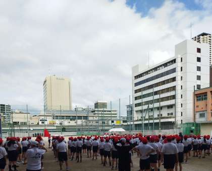 今日は応援団の練習をしています。