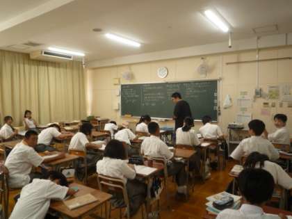 7年生の数学で、一次方程式の授業がありました。いくつかの例題をもとにその導き方を確認していました。