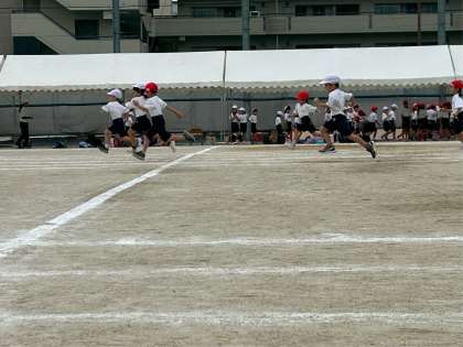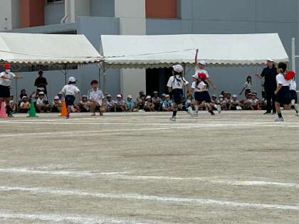 1年生の徒競走です。入学して初めての運動会、思いっきり走れたかな。