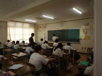 9年生の数学で、相似を学ぶ授業がありました。問題形式で丁寧に解説があった後、小テストが行われ、しっかりと取り組んでいました。