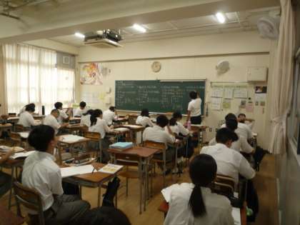 8年生の数学で、一次方程式を学ぶ授業がありました。テスト対策として問題形式で取り組んでいました。