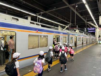 浜寺公園に遠足です。今から電車でなんば駅から浜寺公園駅まで行きます。