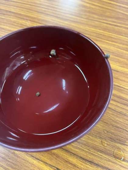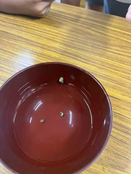 お椀に入れたカイは、海水を入れると、陸に上がろうするように海水から逃れ、お椀の上の方に上がってきました。