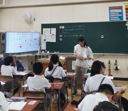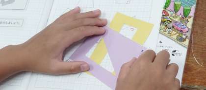 2枚の紙を組み合わせてできた四角形を仲間分けします。