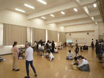 8年生が5年生に絵本を読み聞かせる小中合同の取り組みがあり、児童が選んだ本を優しく読んで聞かせていました。
