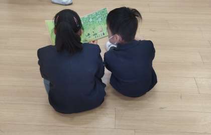 5年生と2年生との交流の様子です。