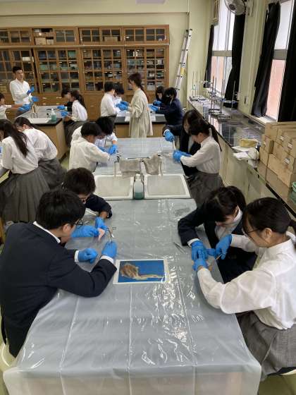 8年生の理科で解剖実験がありました。手羽先を使って器用にハサミを使い