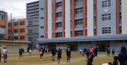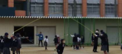 ドッジボールや大なわなどグループで決めた遊びをしています。