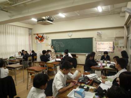 8年生の理科で、教室で直列並列の確認実験が行われました。いろいろ考えながら、どうすれば豆電球が光るかチャレンジしていました。