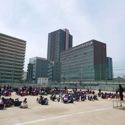 始業式等が終わり、小学生は集団下校班に集まり、下校を開始しました。