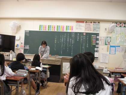 4月23日(水)3時間目、4年2組は国語で「こわれた千の楽器」を学習していました。千のこわれた楽器が、なぜ、いきいきと演奏に夢中になっていたのかを考えていました。楽器たちの演奏を聞いた月の様子から、すばらしい演奏であったことを子どもたちは感じとっていました。