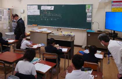 少人数で授業をすることにより、よりきめ細やかに子どもたちに指導しています。