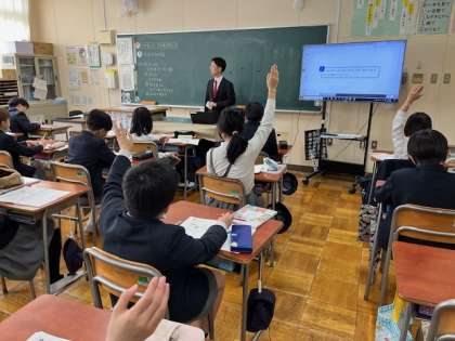 5月1日(木)4時間目、6年1組は算数で「式が表している場面を考えよう」というめあてで学習していました。