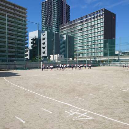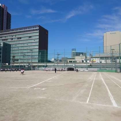 運動場で、ソフトボール投げと50m走を実施します。