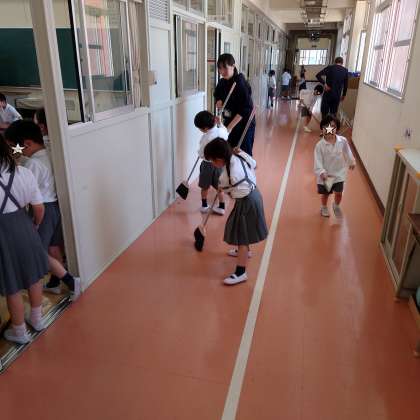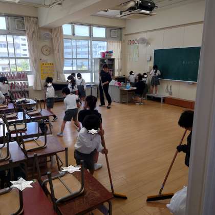 みんな、楽しく一所懸命に、自分たちの使う場所を掃除しています。