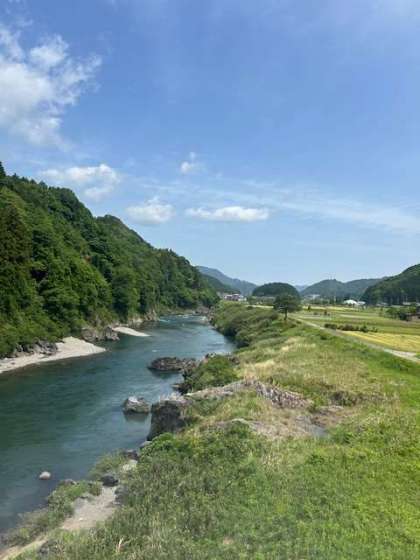 ラフティングスタート地点まで、バスで移動しました。