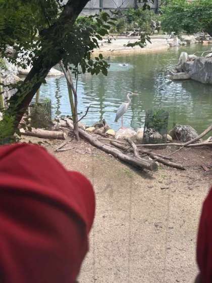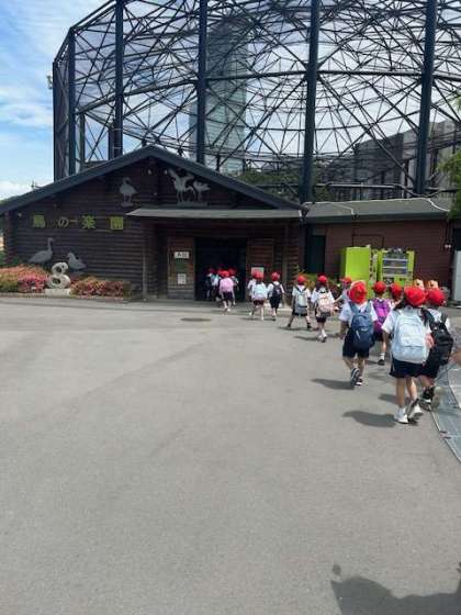 「鳥の楽園」は、少し涼しくて、「外に出たくないー」「疲れたー」と言いながらも、近くで大きな鳥を見ています。